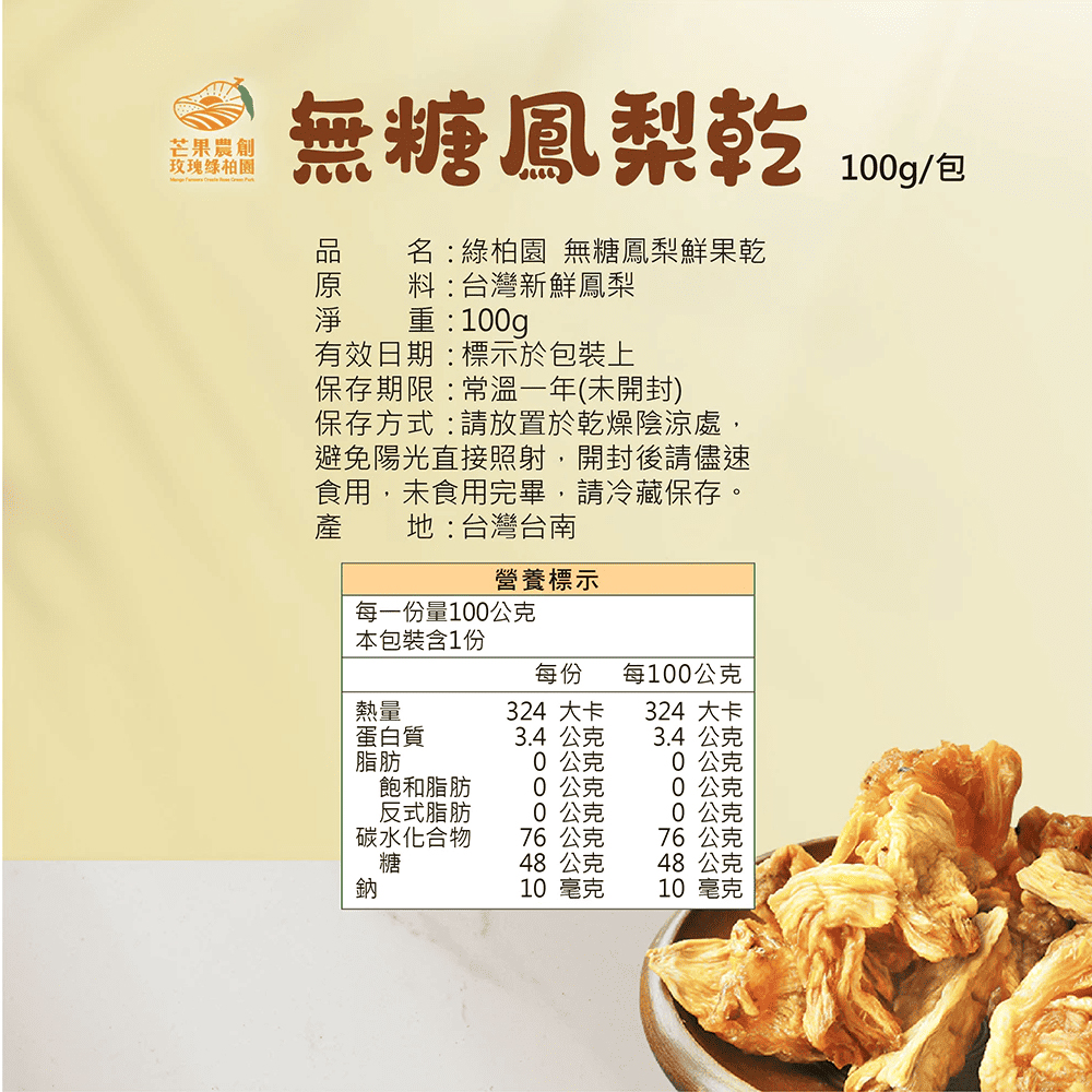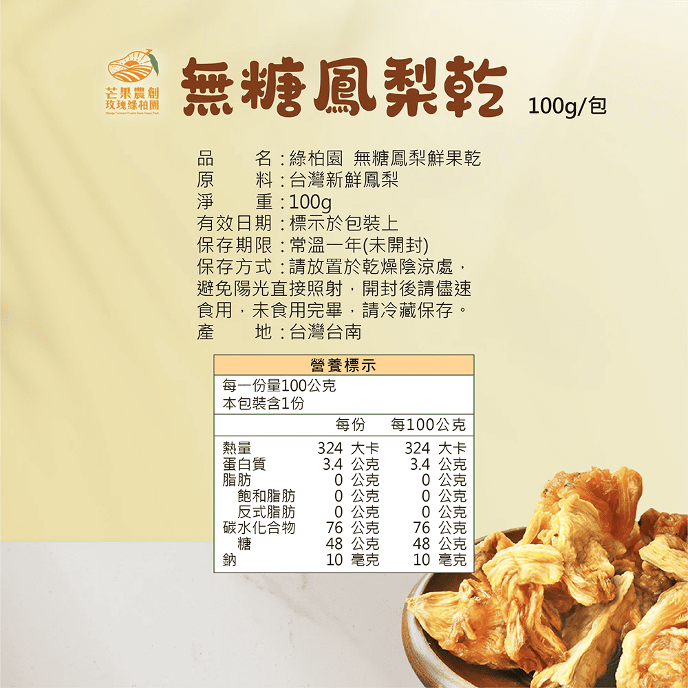 綠柏園無糖鳳梨乾(100g/包)直播最好評 / 蝦皮優選 / 無糖金鑽鳳梨乾 / 低溫烘培