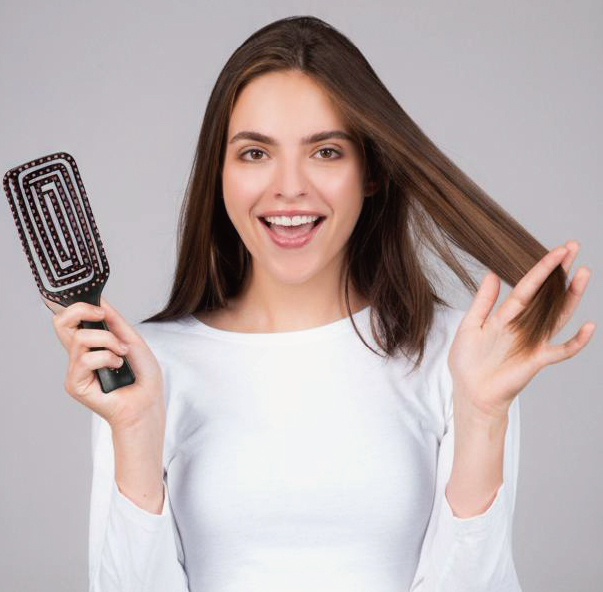 在梳頭髮時,每寸髮絲都能輕鬆通過梳齒,梳齒特殊間距及角度設計,不易拉扯頭髮,能感受到輕柔感,讓髮絲服貼柔順